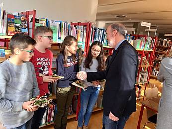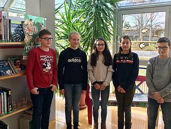 Am 28.11.2019 war es wieder soweit, die Sieger der Klassenentscheide aller 6. Klassen kamen in der Stadtteilbibliothek Wiblingen zum Schulentscheid zusammen. Die Kandidaten der fünf verschiedenen Klassen waren bestens gerüstet: Für die Klasse 6a stieg Leon Brinster in den Ring. Die Klasse 6b schickte Alena Domic ins Rennen. Marie Schadenberger startete für die Klasse 6c. Nora Filbinger wurde von der Klasse 6d nominiert und Cian Scherenberger durfte als Klassensieger der 6e antreten.