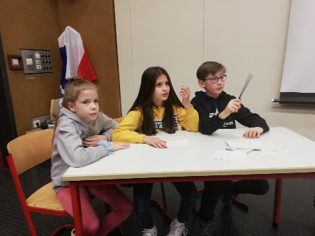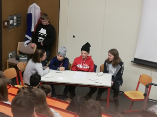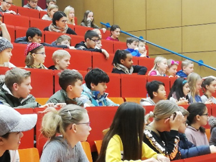 Neben diesem Quiz, einem Action-Video der Parcours-AG zeigten die Französischschüler der 6b den 5. Klässlern mit einem Sketch und einem Lied, wie toll sie schon nach einem halben Jahr französisch sprechen können.