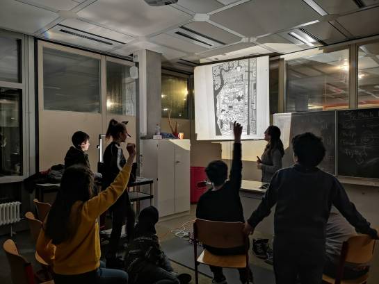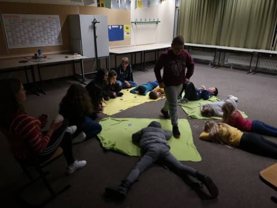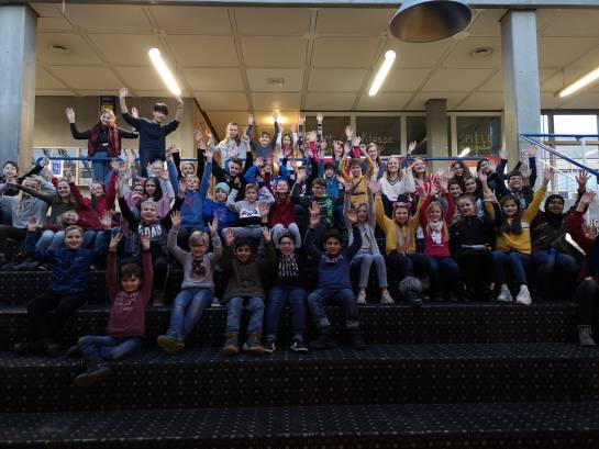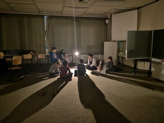 50 Geister aus fünf verschiedenen fünften Klassen erlebten am 24. Januar einen ganzen Abend voller Geschichten und Spiele in den Klassenzimmern der Schule. In fünf Gruppen wurden die Fünftklässler – von ihren Klassenpaten begleitet – in die Geschichten von Werwölfen, Aliens und schaurigen Ereignissen gezogen, die manch Einen und manch Eine kaum aus ihrem Bann lassen wollten.