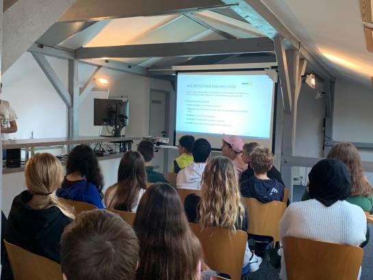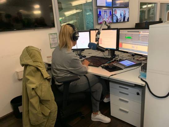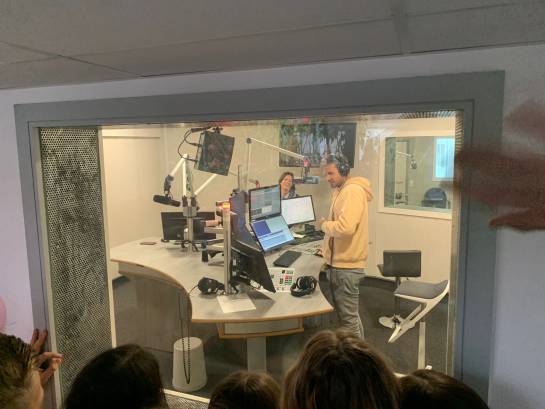 Im Radio 7 angekommen, wurde die Klasse als erstes in einen Raum geführt, wo ihnen erklärt wurde, wie das Radio funktioniert und welche Aufgaben die Mitarbeiter haben. Dabei wurden ihnen auch verschiedene MitarbeiterInnen von Radio 7 vorgestellt, die ihnen einen Einblick in ihre Arbeit gaben. Danach wurden sie in kleine Gruppen aufgeteilt. Jede Gruppe hatte die Gelegenheit, Interviews zu führen und selbst Texte über das Wetter und den Verkehr vorzulesen. Es war eine aufregende Erfahrung, in die Welt des Radios einzutauchen und selbst aktiv dabei zu sein. Die Zeit verging wie im Flug, und schon bald war der Besuch vorbei.