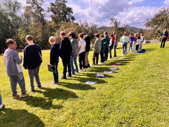 Am 24.09.2024 hatten wir, die 7. Klassen des Albert-Einstein-Gymnasiums, das Vergnügen, einen ganz besonderen Exkursionstag zu erleben, der uns in die faszinierende Welt der Römer entführte - und zwar zur villa rustica in Hechingen-Stein. Schon der Hinweg im Bus mit Blick auf die Burg Hohenzollern ließ erahnen, welch strategisch und landschaftlich schönen Ort sich die Römer als Ratsstätte auserkoren hatten.