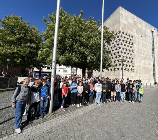Nachdem die Klassen 6a und 6b am 28. April die Synagoge in Ulm besucht haben, durften die Religionsgruppen der Klassen 6cde – evangelische, katholische und islamische Religion – einen Tag später am 29. April 2025 ebenfalls die Synagoge besichtigen.