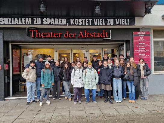 Um diesen doch sehr komplexen und vielschichtigen Roman besser zu verstehen, ging es am 26.11.2025 für die beiden Deutsch-Leistungskurse zusammen mit Frau Sattler und Frau Badicke nach Stuttgart, denn dort wurde zu der Zeit das auf „Heimsuchung“ basierende Theaterstück im Theater der Altstadt aufgeführt.