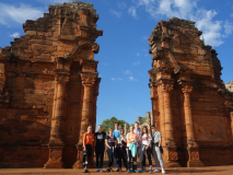 Puerto Iguazú ist eine Kleinstadt im Nordosten von Argentinien, nahe der Grenzen zu Brasilien und Paraguay. Wir traten die ungefähr dreizehnstündige Fahrt in einem komfortablen, doppelstöckigen Reisebus an, den unsere 38-köpfige Gruppe komplett in Anspruch nehmen konnte. Unterwegs machten wir an einer Schaumine halt, in der Edelsteine abgebaut werden, und bei Ruinen eines Klosters aus der Kolonialzeit, welches heute unter Denkmalschutz steht. In Iguazú angekommen, bezogen wir erst einmal die Zimmer unseres Hostels, bevor wir uns abends noch mit Vorräten eindeckten. Am nächsten Tag ging es nach Paraguay, in die dortige Grenzstadt Ciudad del Este. Wir besuchten morgens den Itaipú-Staudamm, der das zweitgrößte Wasserkraftwerk der Welt darstellt. Der Itaipú-Staudamm liegt an der paraguayisch – brasilianischen Grenze am Fluss Paraná. Am Nachmittag besuchten wir den Salto de Monday, einen Wasserfall.