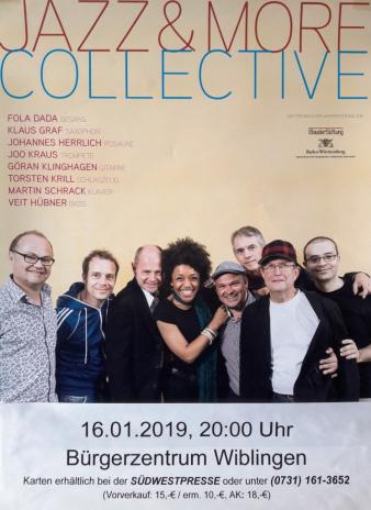 Nach zwei erfolgreichen Konzerten kehrt das Künstlerkollektiv „Jazz & More“ um Fola Dada, Prof. Klaus Graf, Joo Kraus, Prof. Johannes Herrlich, Göran Klinghagen, Prof. Martin Schrack, Veit Hübner und Torsten Krill am 16.01.2019 ans Albert-Einstein-Gymnasium zurück, um dort erneut mit unserer Einstein-Bigband einen Workshop zu veranstalten.