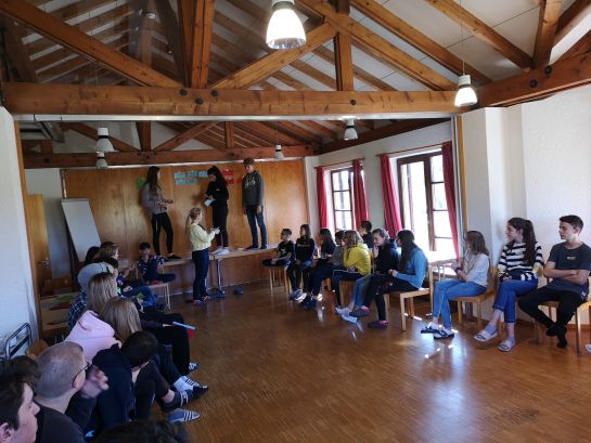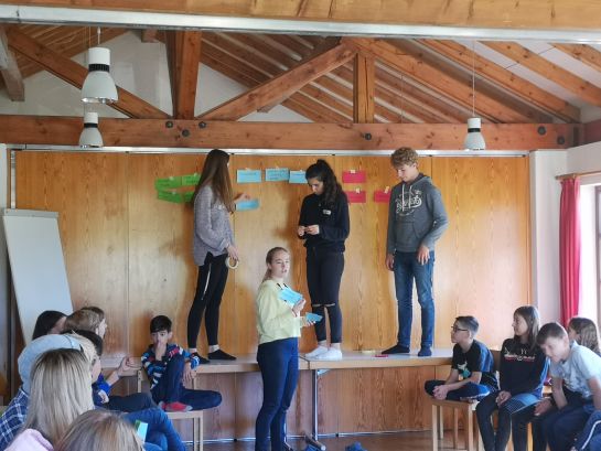 Nachdem wir, nach einer einstündigen Busfahrt, um 12 Uhr mittags angekommen waren und die Betten bezogen hatten, starteten wir die diesjährige SMV-Hütte mit einem witzigen Kennenlernspiel, bevor es dann schon direkt mit unserer Steckwand weiterging: