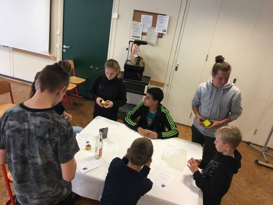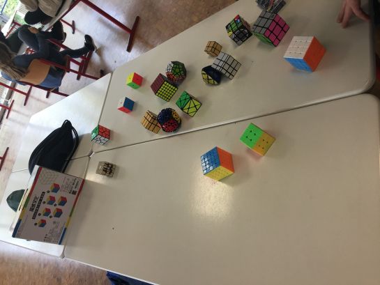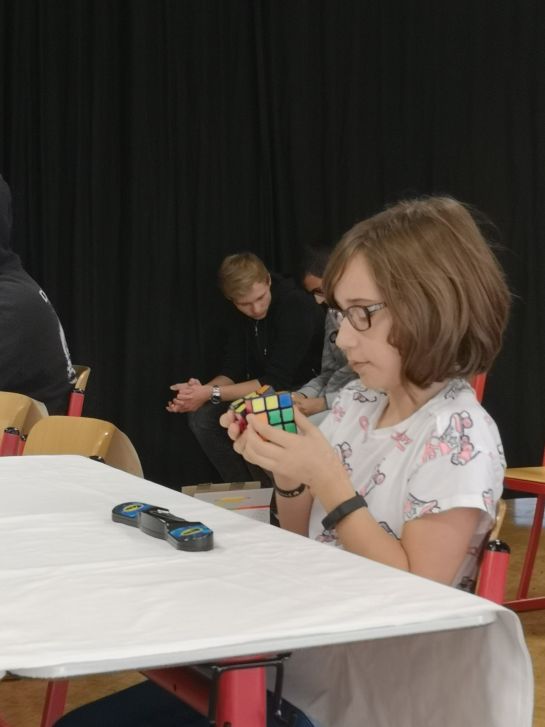 Aber viel wichtiger als der eigentliche Wettbewerb war der Austausch über die verschiedenen besonderen Würfel und schnelleren Algorithmen, der nebenher lief. So kam es, dass, auch als die Schulleitung und die Schülersprecher vorbeischauten, diese direkt mit eingebunden wurden und ihnen die verschiedenen Würfel genau erklärt wurden. Dabei war am Ende allen klar: Es war ein spannender Wettbewerb, ein perfekter Nachmittag und wir können das nächste Mal kaum erwarten.