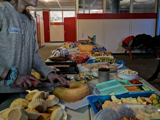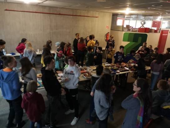 In den Pausen hatten alle die Gelegenheit, sich an dem reichlichen Buffet zu bedienen, für das die Fünftklässler Kuchen und Finger Food beigesteuert hatten. Die Fünftklässler waren von diesem gemeinsamen Abend sichtlich begeistert. Um 21 Uhr war dann tatsächlich Bedtime und sie wurden von ihren Eltern abgeholt. Vielen Dank an alle Lehrer, die sich für unsere Bedtime-Stories Zeit genommen haben, an alle Mitglieder der SMV, die mit den Fünftklässlern gespielt haben, und an die Klassenpaten, die mit viel Bravour die Gruppen geleitet haben!