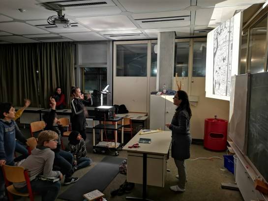50 Geister aus fünf verschiedenen fünften Klassen erlebten am 24. Januar einen ganzen Abend voller Geschichten und Spiele in den Klassenzimmern der Schule. In fünf Gruppen wurden die Fünftklässler – von ihren Klassenpaten begleitet – in die Geschichten von Werwölfen, Aliens und schaurigen Ereignissen gezogen, die manch Einen und manch Eine kaum aus ihrem Bann lassen wollten.