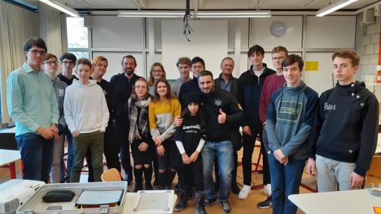 Am 17. Dezember 2019 hatten wir Herrn Abdulkader, den Regisseur von Cinematicz und Produzenten des vieldiskutierten „Vielfalt leben in Deiner Stadt“-Films zu Gast bei uns in der Politik AG. Wir hatten die Möglichkeit, ihm trotz des Fehlens einer großen Anzahl unserer Mitglieder, einige Fragen zur Entstehung des Films, seinen Ideen dazu, der beabsichtigten Interpretation des Filmes und seiner Kooperation mit dem Auftraggeber, der Stadt Ulm, welche durch Frank Riethdorf vertreten war, zu stellen. Nachdem unsere vorbereiteten Fragen beantwortet waren, gingen wir noch in eine offene Fragerunde über, in welcher das gesamte Auditorium noch in das Gespräch mit Herrn Abdulkader kommen konnte und eine offene Diskussion über dessen Film führen konnte. Herr Zloch und seine Model United Nations-AG stärkten die Runde mit ihrer Anwesenheit.