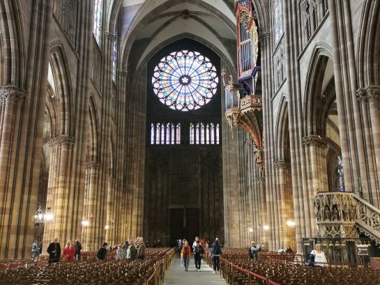 In der Hauptstadt des Elsass angekommen, steuerten wir zunächst das Wahrzeichen der Stadt an, das Straßburger Münster. Hier bewunderten wir besonders die großen bunten Kirchenfenster und die astronomische Uhr im Inneren.