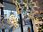 Das „arme", einfache, teils mit expressivem Action-Painting vorbemalte Wellpappematerial scheint nun federleicht im Foyer der Sparkasse Neue Mitte durch den Raum zu wehen. Die Schnittreste wurden zu Tieren des Waldes und zu ungewöhnlichem Baumschmuck veredelt. Die Ausstellung ist immer zu den Öffnungszeiten der Sparkasse zu besichtigen. Aber auch von außen ist das Foyer des Baunfels-Baus zu einem aparten, winterlichen Schmuckkästchen verwandelt.