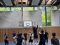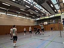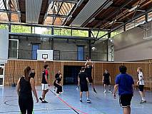 Am 23.07.25 fand unser jährliches Sommer Volleyball Turnier statt. Die sieben Teams konnten bei jeweils sechs Spielen gegen alle anderen Mannschaften ihr Können beweisen. Die Stimmung war super und sowohl den Zuschauern als auch den Mannschaften gefiel das Turnier sehr gut. Im Gegensatz zum W-Volt, also dem Winter Volleyball Turnier, dürfen im Sommer nur Schüler*innen der Klassen 10,11, J1, J2 und natürlich auch Lehrer*innen mitmachen. Nach einem kurzen Aufwärmen der Teams begann unser Turnier. Auf drei Spielfeldern konnten sechs Mannschaften parallel spielen. Das übrige Team half immer als Schiedsrichter aus. Nach einer Spieldauer von sieben Minuten wurden die Ergebnisse notiert. Während der fünf-minütigen Pause bereiteten sich die Teams auf das nächste Spiel vor. Nachdem Jeder gegen Jeden gespielt hatte, wurden die Ergebnisse ausgerechnet und die Gewinner bekannt gegeben. Der 1. Platz ging an das Team BUDE, der 2. Platz an das AlphaBeta-Gamma und der 3. Platz an die Netzfetzer. Vielen Dank auch an die Teams: Netztester, FC Jobcenter, How I set your mother und Jumbojet für's Mitmachen! Hoffentlich sehen wir euch nächstes Jahr wieder!