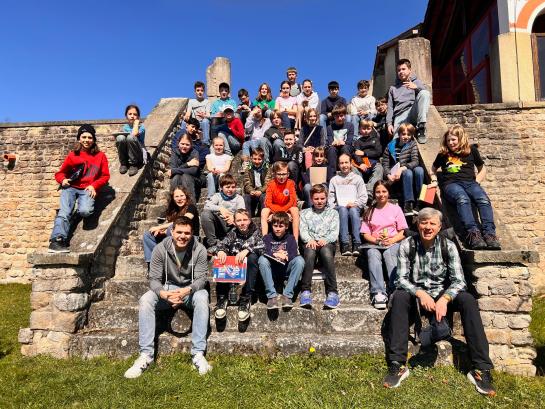 Nach der Mittagspause versammelten sich alle an einer Treppe für das Gruppenfoto, danach gab es noch ein kleines Spiel. Aber der Höhepunkt war die Rallye: Alle bekamen ein Blatt und beantworteten darauf Fragen, wofür sie kreuz und quer durchs Gelände laufen mussten.