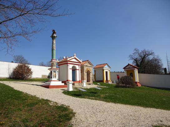 Auf dem Villa-Rustica-Gelände gab es auch einen Spielplatz mit zwei Hütten, einem Sandkasten, einer Seilbahn, einer Hängematte und noch mehr. Der Angestellte des Freilichtmuseums erzählte, dass die Archäologen manche Mauerreste nach der Entdeckung auch wieder für die nächste Generation vergraben hätten.