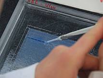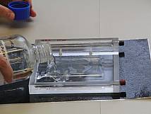 Am Ende werden die DNA-Proben gefärbt. Die drei bekannten DNA-Proben werden mit der unbekannten Probe („Täterplasmid“) verglichen.